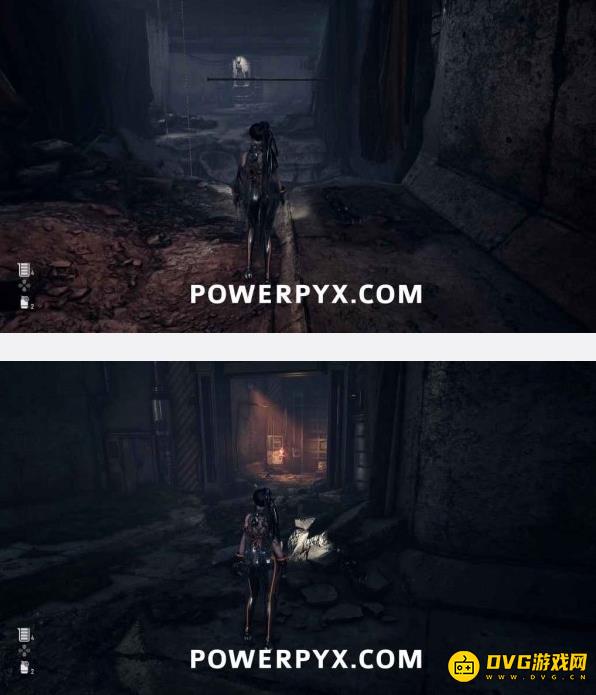 返回下坡前的区域,从左侧的洞跳到下层,注意下方有敌人,落地的地方有一具尸体,互动可以获得记忆棒。