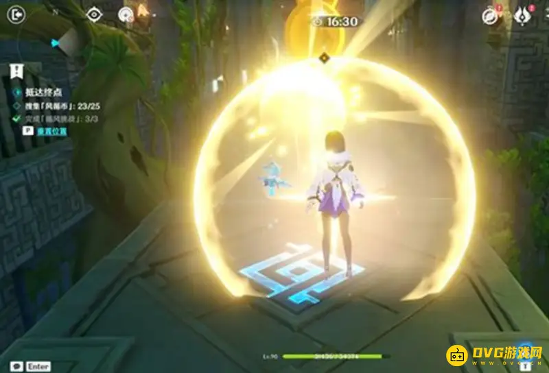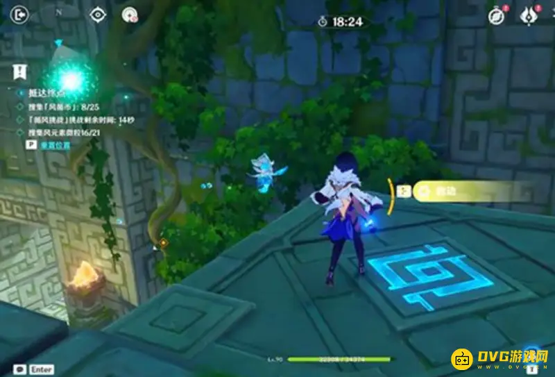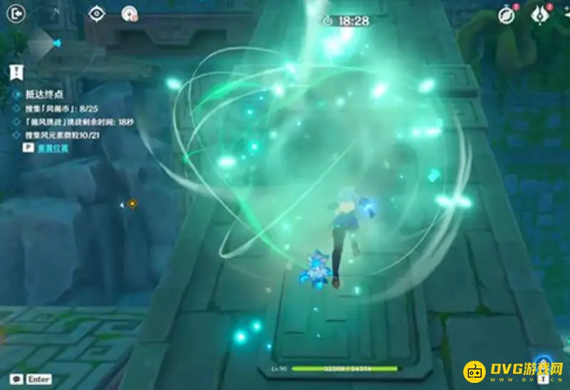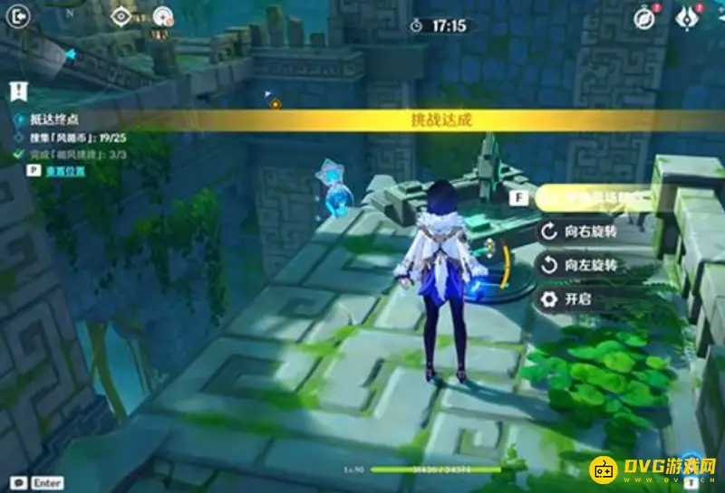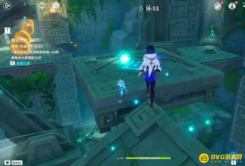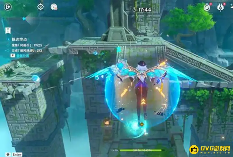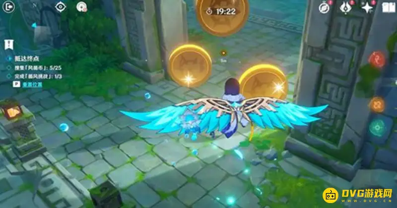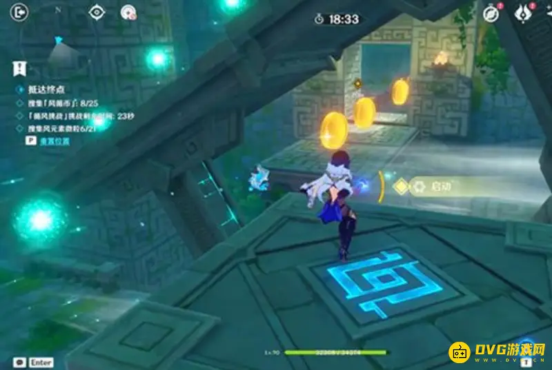 2、进入秘境后跟着金币来到第一个挑战处,第一处比较简单,利用控风枢开启和关闭风场可以使平台上升下降,以完成第一次挑战(这里不用改变风场方向);