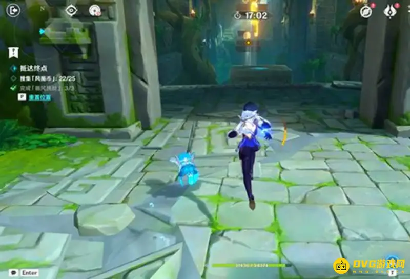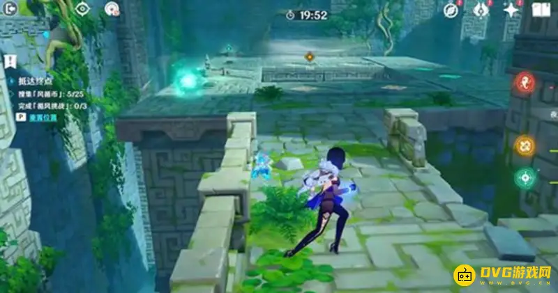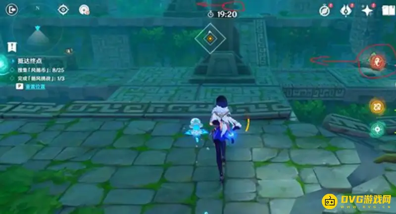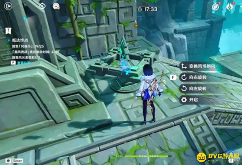 3、右侧跳下来进入第二个区域,先不急着开启第二次挑战,先将下图两个机关风向向左;