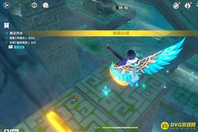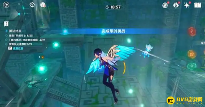10、完成挑战,完成挑战后机关风向向上,飞上去进入下一个区域;