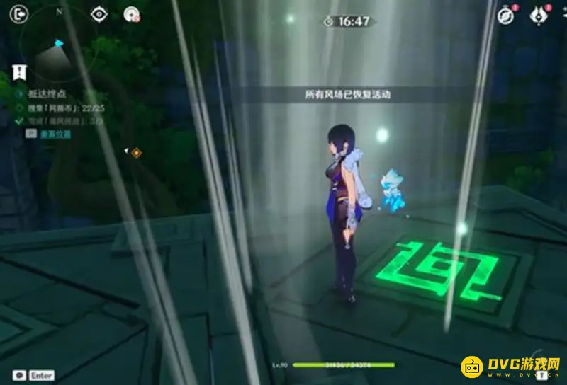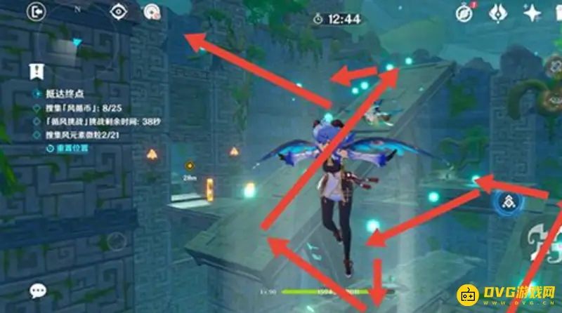 4、开启风场,触发第二次挑战,到下图位置时先过去将右侧风场方向向左;