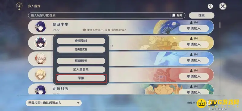 在该页面选择想要举报的玩家,选择好之后可以点击他/她的头像并点击举报