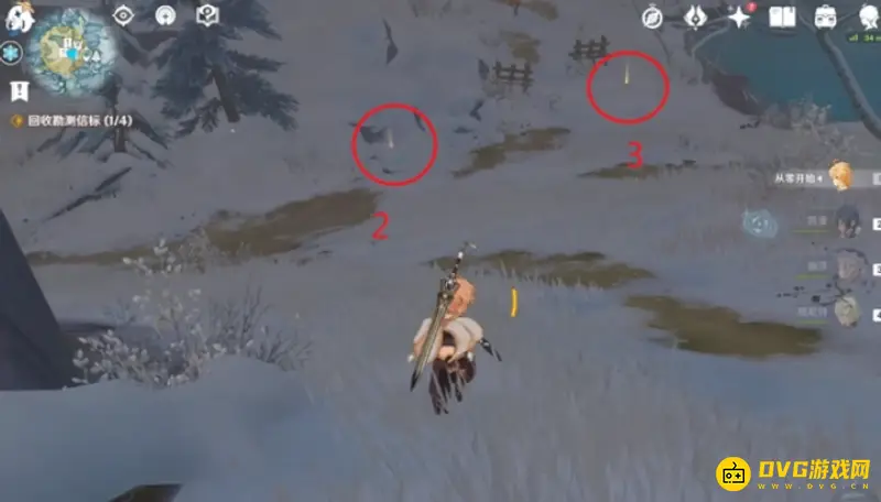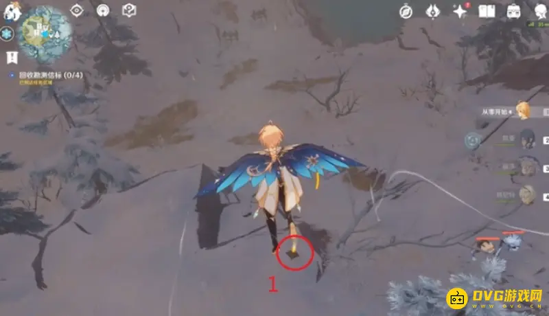 3、从传送点往地图左边飞就可以看到点1信标,在丘丘人旁边。