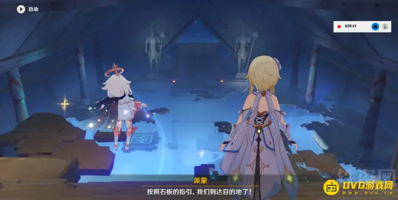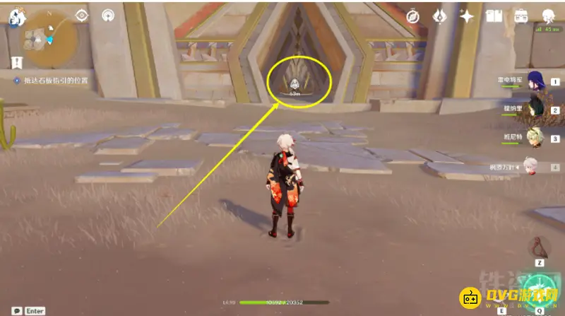 3、可以看到地图上出现了指引图标,到达位置后会出现石板的指引,跟随指引前行就好