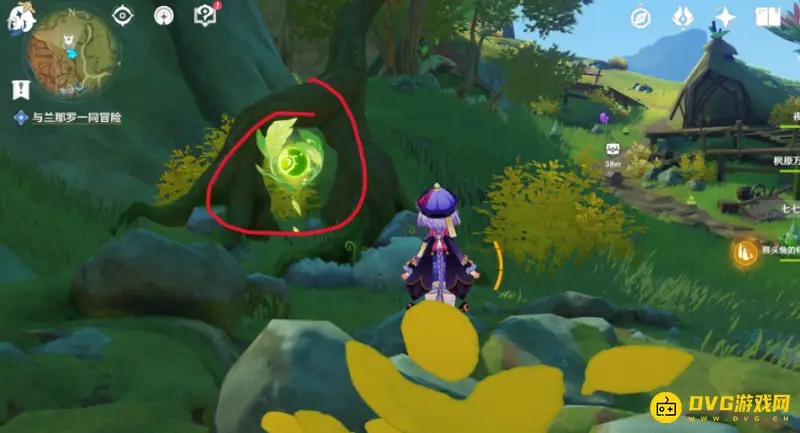6、朝南方向来到谒颂幽境草神瞳就在石头堆上。