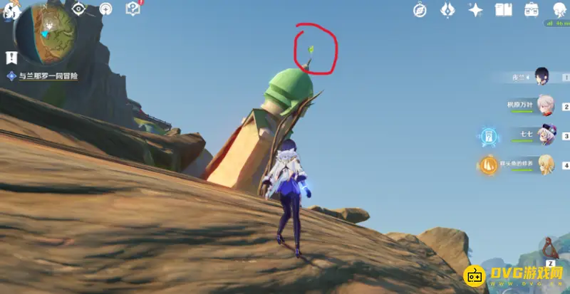2、继续朝西北方向走,草神瞳在这个塔顶位置。