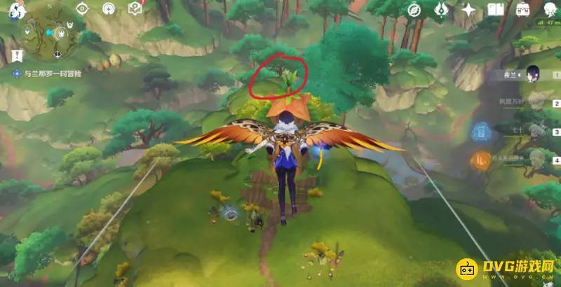 5、继续朝东方向走,草神瞳就在这个大树上。