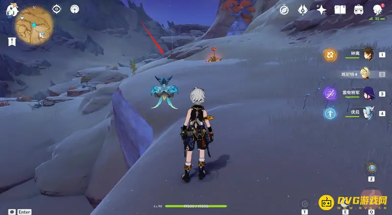 2、降落后看向东南方向,使用东南方向的两个四叶印移动到前方的山丘上。