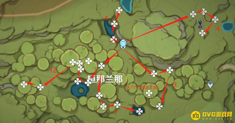 路线7~11:恒那兰那(31个),采恒那兰那的帕蒂莎兰要脱离梦境,用老旧的诗琴进行切换,不然标记的位置生长的是毗波耶。