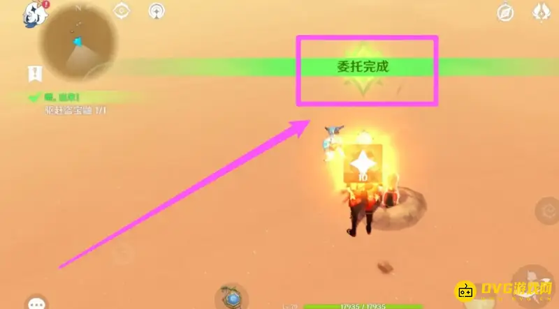 3、完成驱赶,即可完成委托,驱赶盗宝鼬任务完成。
