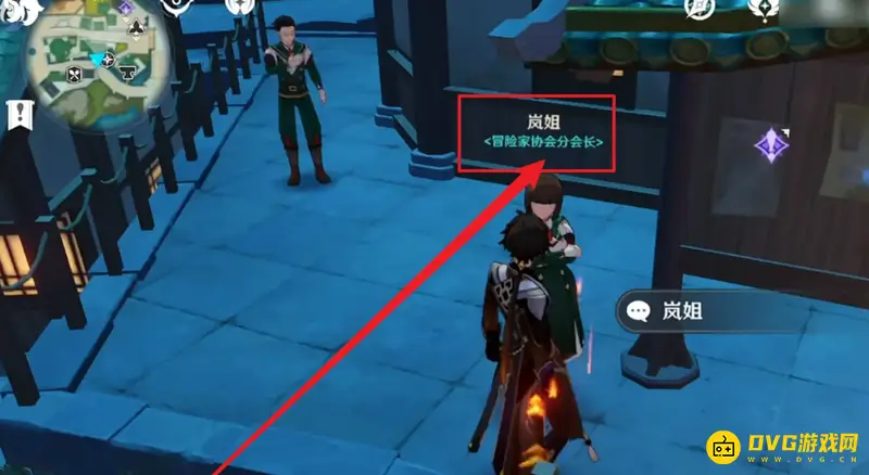 2、与岚姐对话:在冒险家协会右侧公告牌位置与【岚姐】对话推进任务剧情。