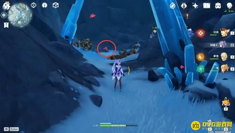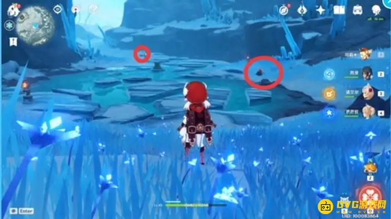 2、第三处封印我们先找到所有仙灵然后打过挑战,碎片的封印【屏障】就会解开,然后就可以攻击图片上的深赤之石拾取来击破封印了;