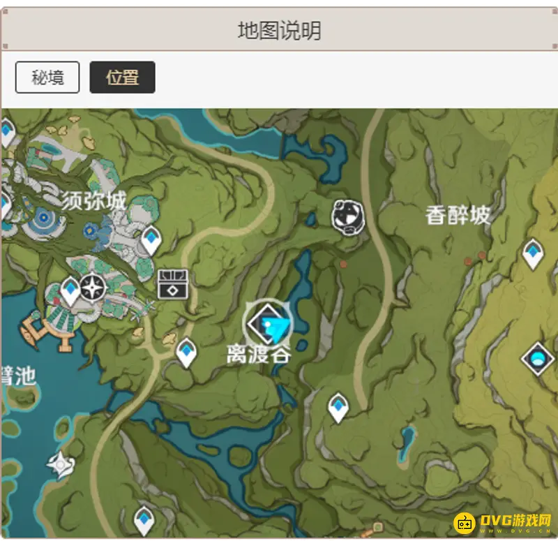 【净琉璃工坊】秘境在离渡谷、在须弥城的右下方。