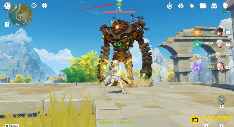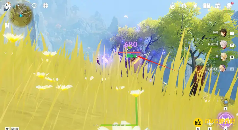 2、接着使用雷元素攻击附着了草元素的怪物,这时会发生蔓激化反应。