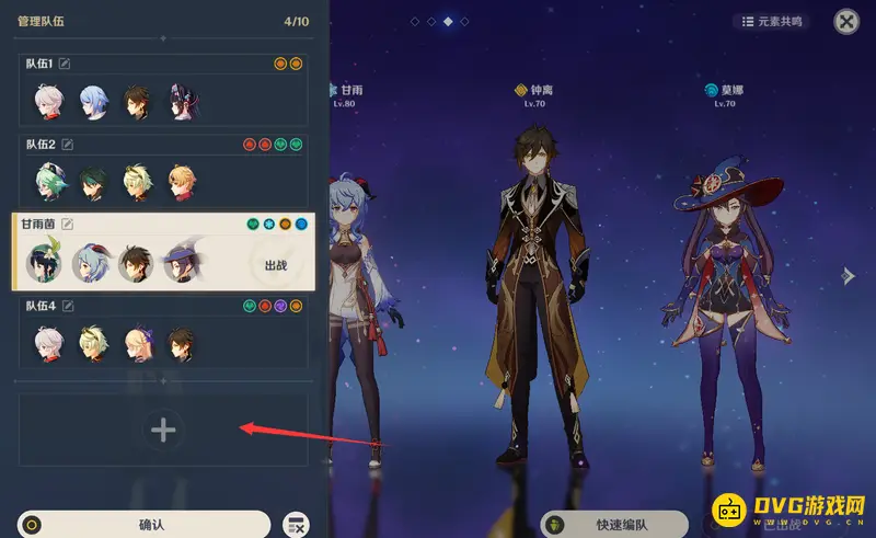 进入之后,点击左边的“ ”号即可添加队伍,最多添加十只队伍。