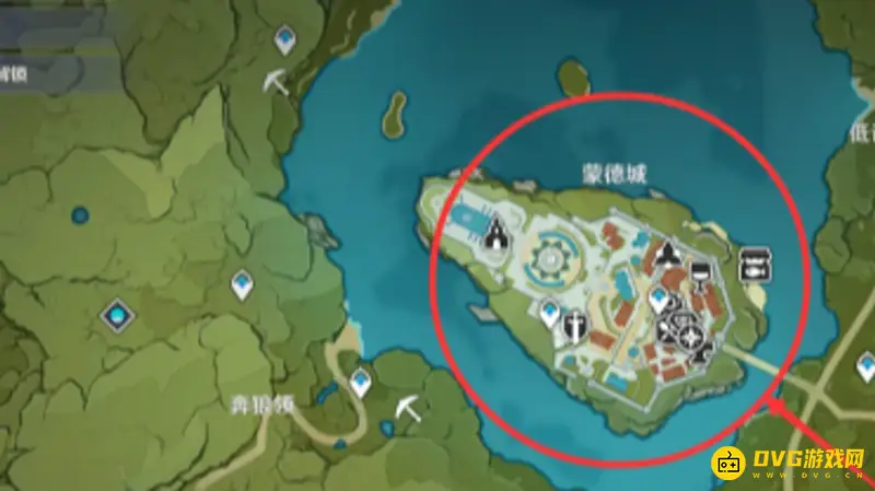 打开游戏地图并传送到蒙德城。