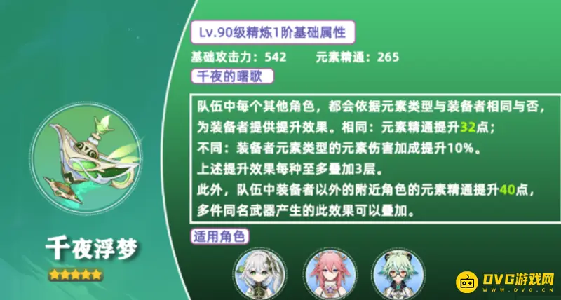 首先适合草神纳西妲,专武千夜浮梦的粗暴元素精通加成非常适合纳西妲的属性和技能机制。同时还可以给砂糖使用,因为元素精通的加成对于砂糖的提升也很明显。最后还可以给八重神子使用,来提高她所带来的元素反应伤害。