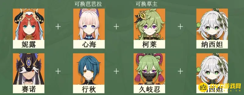 赛诺 行秋 久岐忍 纳西妲多种反应阵容以行秋的减免伤和久岐忍的回血维持赛诺的生存,赛诺驻场打输出,赛诺主C可以换成刻晴,行秋也可换成钟离套盾站撸。