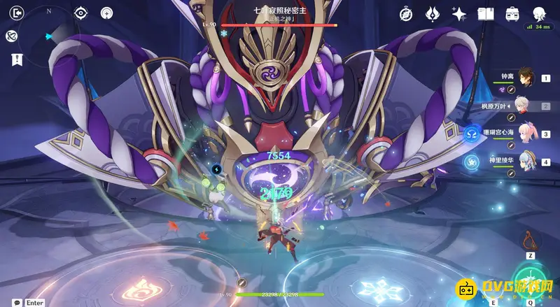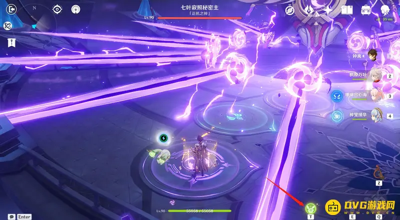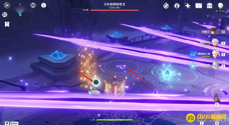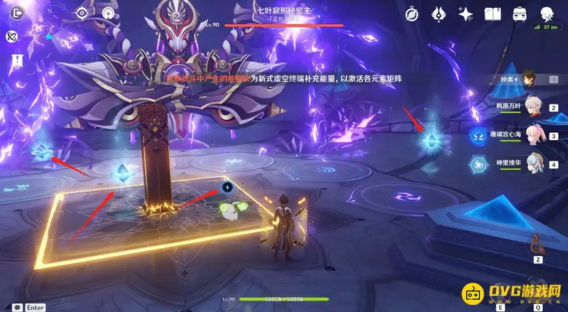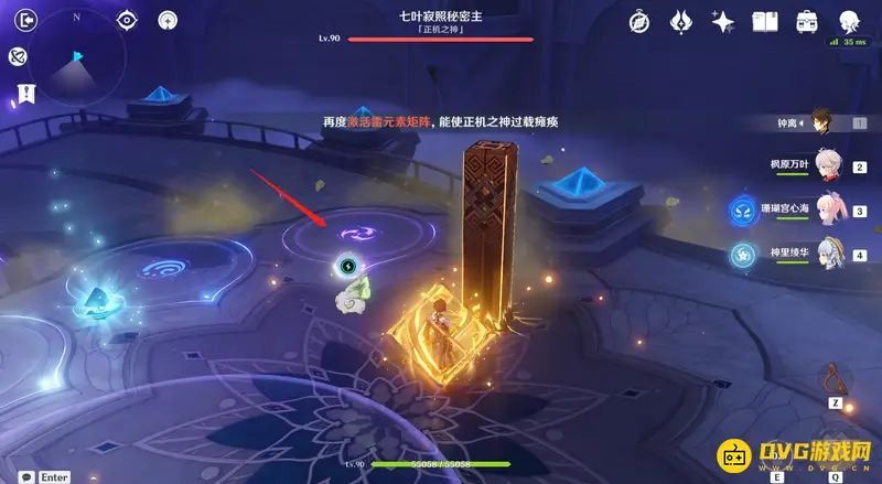 5、站到雷元素图标上按T键使用虚空终端的技能,从而瘫痪掉正机之神的一条手臂。