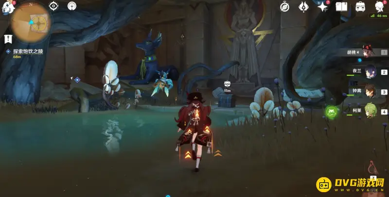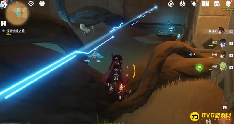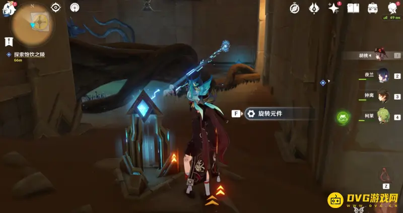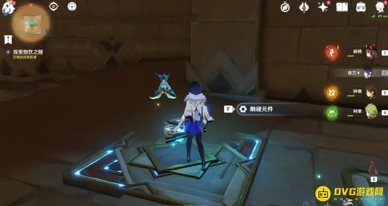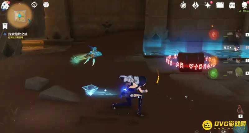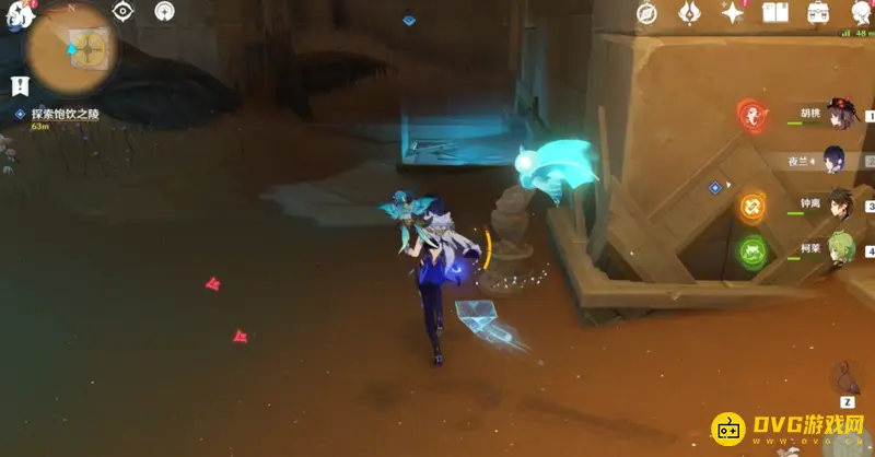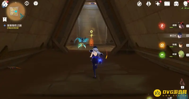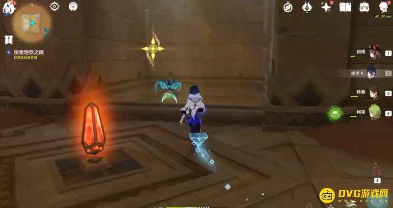 来到任务点进入饱饮之陵,先点击门口的红色立柱,将其转化为蓝色,然后从右边大门进入,能看见两个蓝色方块,旁边就是蓝色三角,使用蓝色三角解锁其中一个方块,等候三角刷新,然后继续激活第二个。