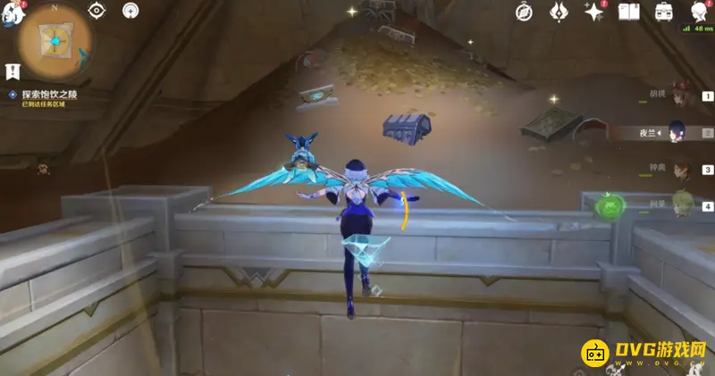 机关开启后回到门口,利用立柱前的风场飞上去,能看见一个宝箱,打开后获得任务物品,饱饮之陵探索完成。
