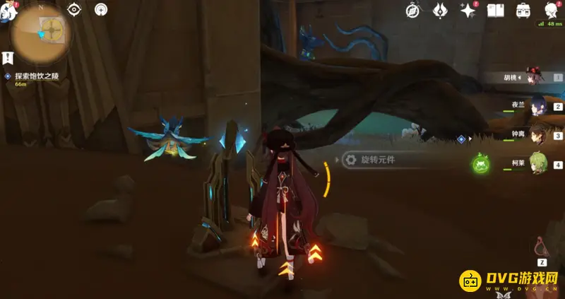 这时候前方就是我们刚才引导仙灵的地方,上去触碰仙灵终点旁边的小元件,侧边的宝箱和机关解锁,上去点击机关。