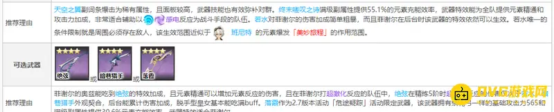 绝弦,菲谢尔的奥兹能吃到绝弦的特效加成,且元素精通可以增加元素反应的伤害,且在菲谢尔打超激化反应的队伍中,绝弦在精炼5阶时超激化反应的伤害仅次于若水。飞雷之弦振比较适用于物理流皇女,飞雷之弦振:大攻击力,爆伤还有飞雷自身增加的普攻伤害,简直是物理流皇女的毕业武器。