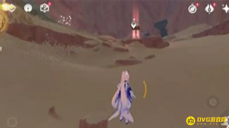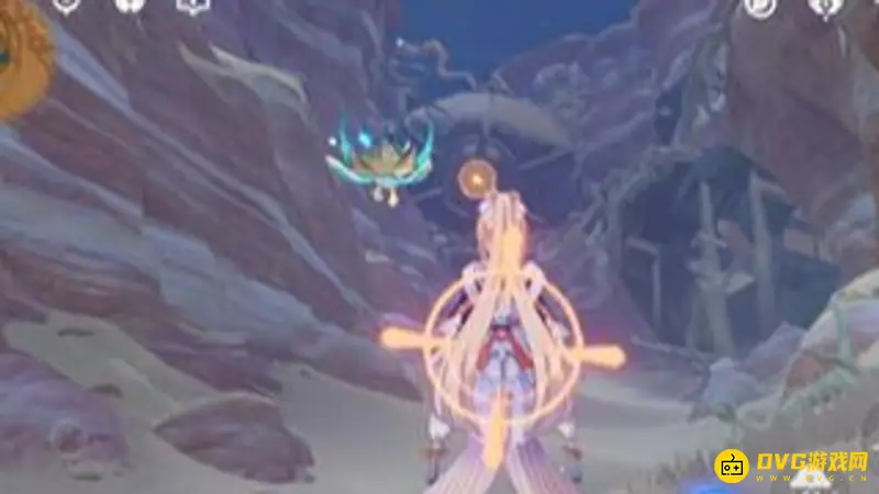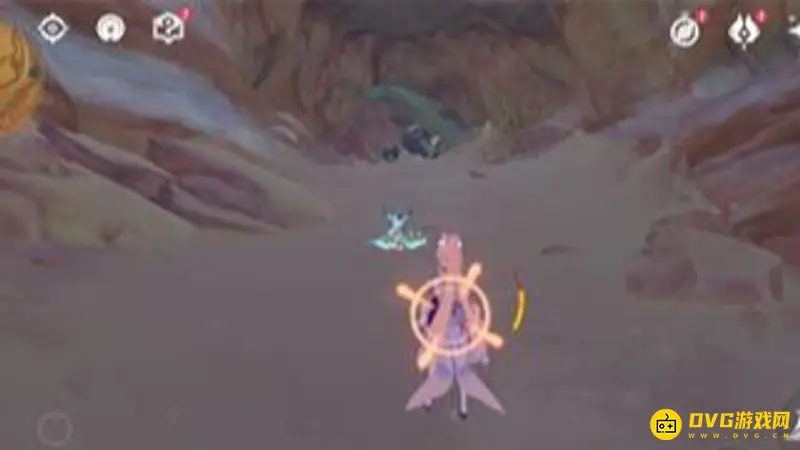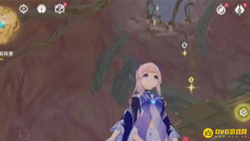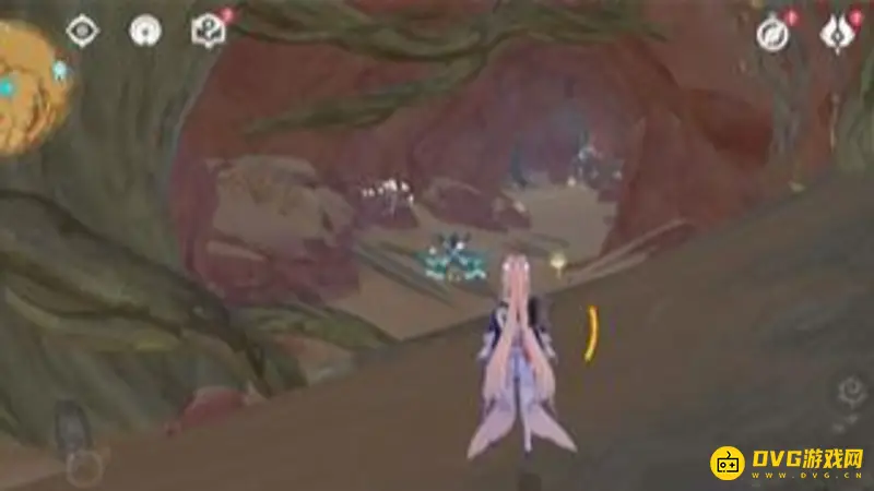 继续往前走。这里再打一下,会看到丘丘人营地,咱抬头拉这个四叶印。