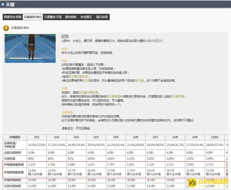钟离护盾厚度的计算公式=基础护盾厚度×【(1 护盾强效)×护盾吸收伤害数值×(1 护盾吸收)】,基础护盾厚度=血量数值×护盾倍率 护盾属性数值。