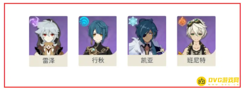 新手配队一:雷泽 行秋 凯亚 班尼特。这套阵容是混伤流的阵容,作为新手前期队伍角色肯定参差不齐,那么使用混伤配队成本较低。队伍中行秋、班尼特、凯亚的辅助脱手能力可以让雷泽输出环境更好。