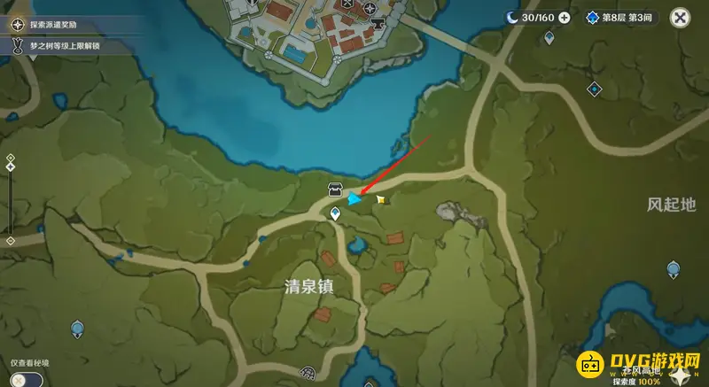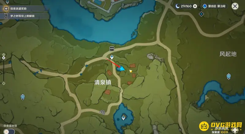 13、第七个宝箱在清泉镇右上角的湖泊旁。