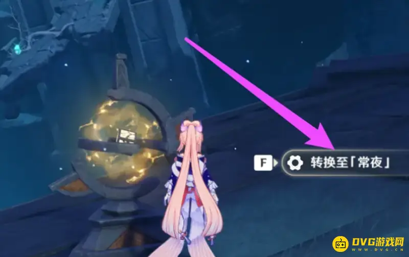 二、在附近找到机关,点击转换至常夜,如下图所示;