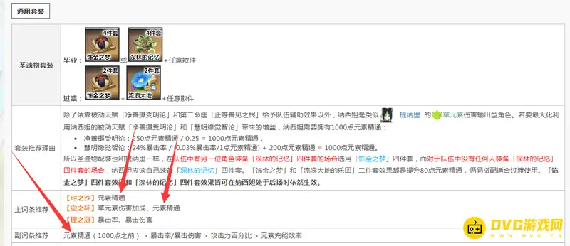 在纳西妲圣遗物进行搭配的时候,也可以尽量选择带有元素精通的圣遗物,这也是纳西妲堆元素精通的主要渠道。