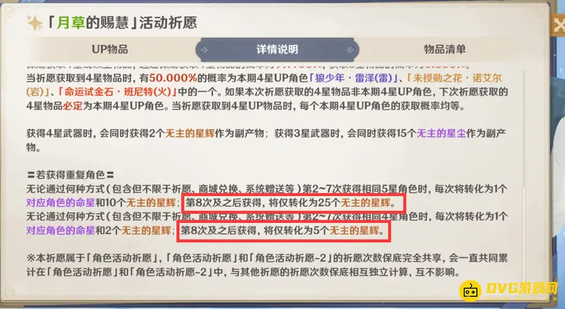 如下图所示,五星角色满命后,再次获得会转换成25个无主的星辉,而四星角色满命后再次获得可以转化成5个无主的星辉。