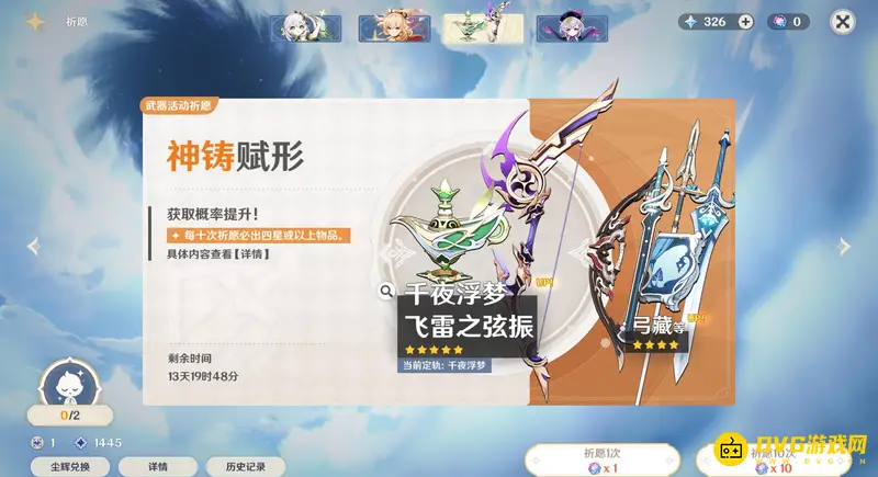 3.2版本的武器池对于有纳西妲和宵宫的玩家来说非常指的抽取。因为3.2版本的武器池除了有飞雷之弦振和千夜浮梦这两把武器外,还有弓藏、流浪乐章以及西风长枪这三把强力的四星武器,抛开纳西妲和宵宫的专武不说,即便是这三把四星武器抽到了也不会亏,不过还是要提醒一下,零氪党和月卡党以及没有纳西妲和宵宫的玩家抽取该武器池需要慎重,不要上头。