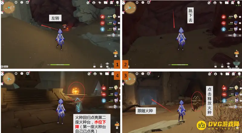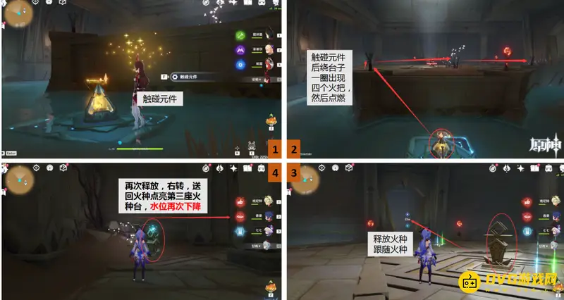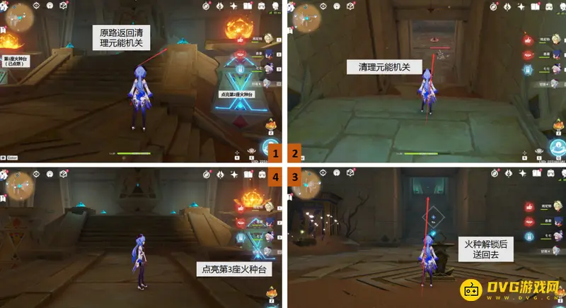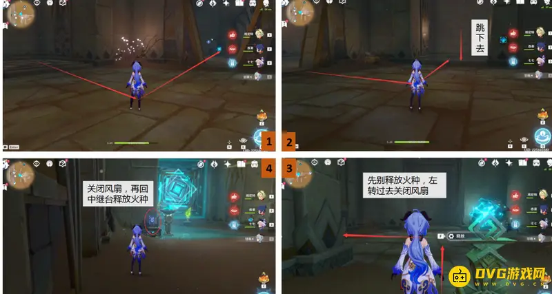 下图3一定要先去关闭风扇(需要权能3级),不然火种经过风扇时会被吹灭,然后回到上一个中继台。