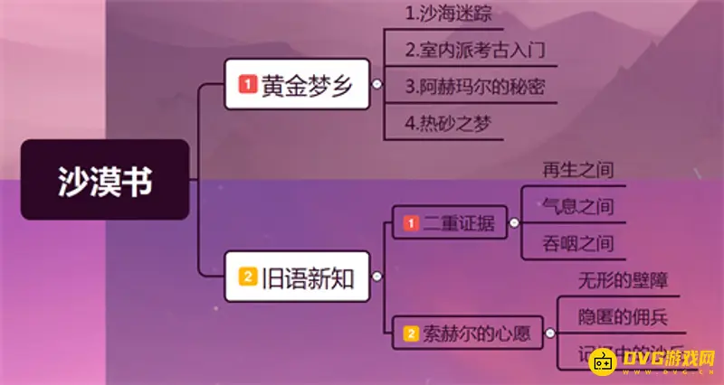 沙漠书的总流程相比森林书短很多,森林书包括四个大型世界任务,而沙漠书只包括黄金梦乡和旧语新知2个世界任务,需要注意的是在完成黄金梦想任务的第二天才会刷新旧语新知世界任务。