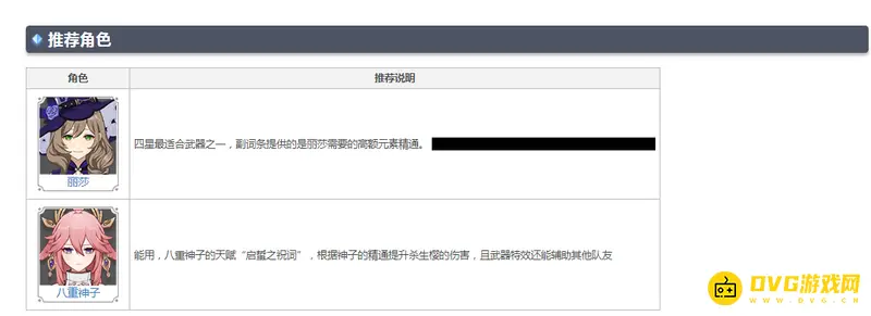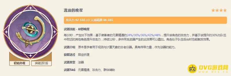四星最适合武器之一,副词条提供的是丽莎需要的高额元素精通。