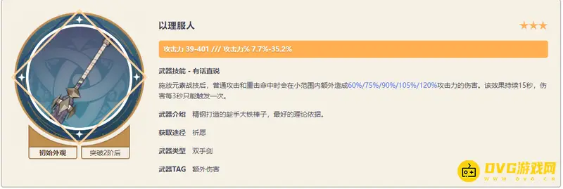 以理服人在前期过度也有着不错的发挥,武器被动初始数值为80%,进阶只提升伤害倍率,在释放元素战技后,诺艾尔进行普通攻击和重击均可打出额外的爆发。