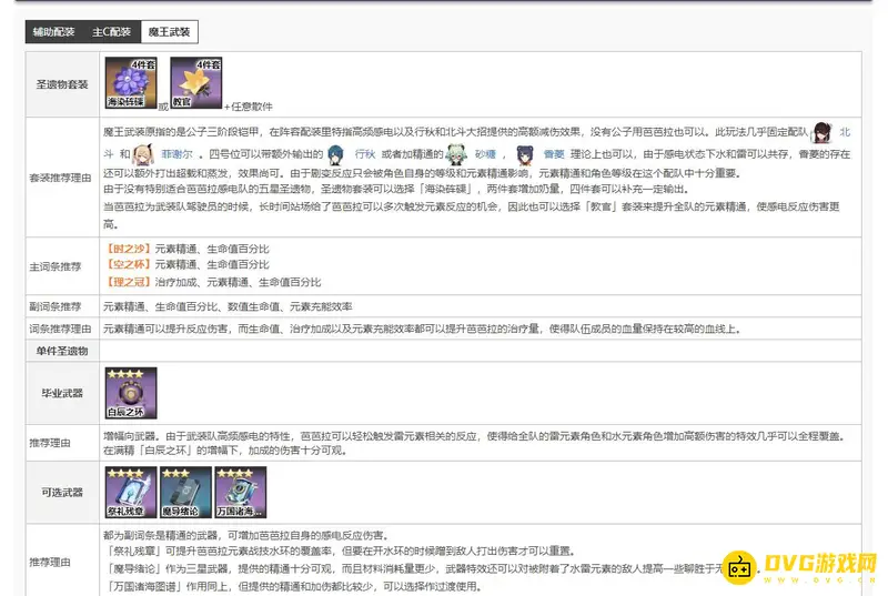 2.芭芭拉如果走魔王武装流,圣遗物可以选择海染砗磲4件套或教官4件套。