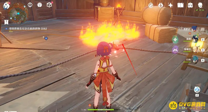 7、经过门之后会来到隔壁的房间,此时使用火元素点燃房间地面上的干草。