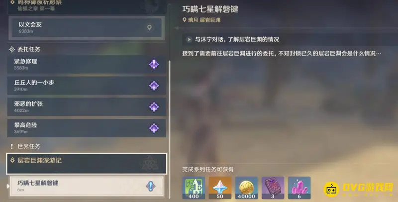 1、接取到任务后来到层岩巨渊琉璃峰上方的位置。