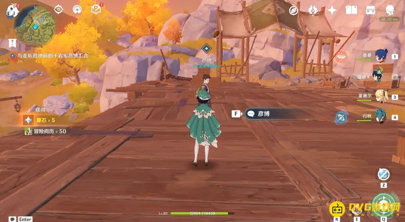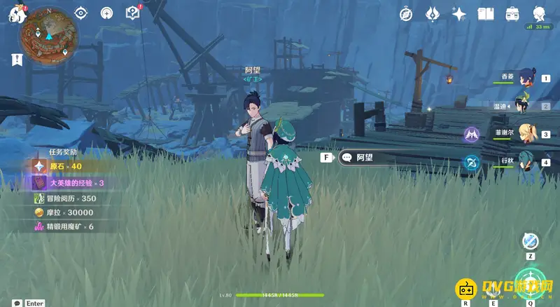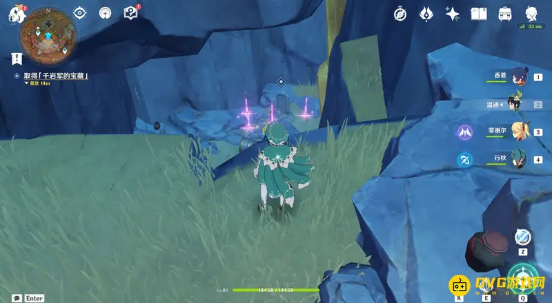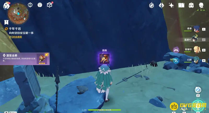 27、交互完成后爬出洞内,与洞口旁边的NPC阿望对话,对话后就能完成世界任务-千年千岩。