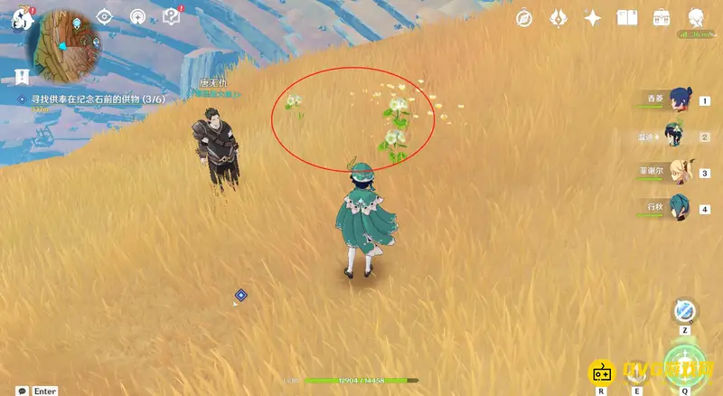 13、到达位置后会在NPC唐无仇面前看到三朵花,将这三朵花全部采摘。