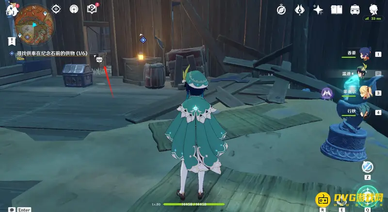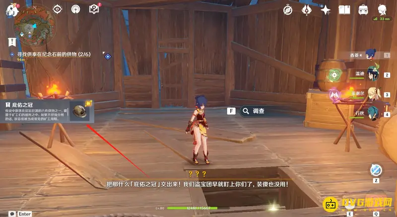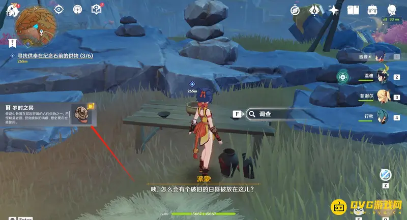 11、到达位置后会看到一张桌子,清理桌子旁的盗宝团后调查桌子,这样就能拿到第三个供物-岁时之晷。