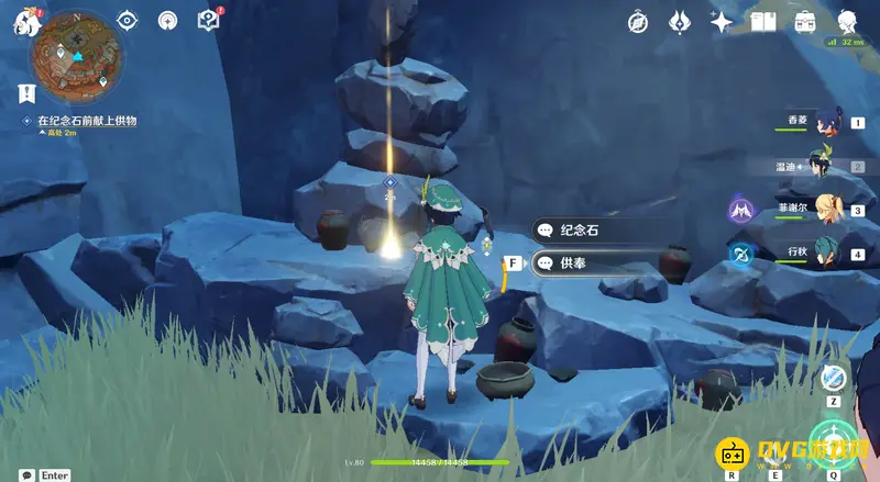 24、六个供物到手后根据千年千岩任务指引,回到纪念石前供奉六个供物。