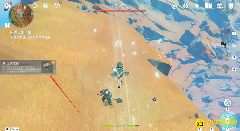 14、三朵花采摘完成后就会获得第四个供物-远眺之花,同时会进入战斗模式,玩家需要击败唐无仇。