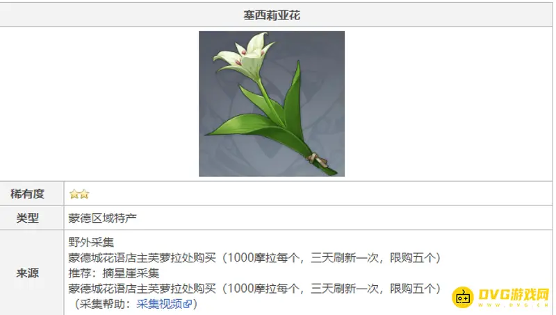 应该是百合花,塞西莉亚花和百合花外观相似,来源:野外采集,推荐去摘星崖采集,或则可以到蒙德城花语店主芙萝拉处购买(1000摩拉每个,三天刷新一次,限购五个)。