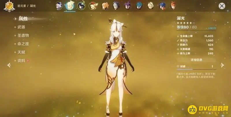 4星武器里最好的武器应该是珍珠纪行30级换的匣里日月,暴击基础属性 特效也都非常适合凝光,如果当副C目的是切出来打爆发的话带流浪乐章也是非常好的选择。实在没有武器,用锻造的万国诸海图谱也行,虽然元素精通对输出没啥帮助,不过特效叠的属伤还是挺有用的。