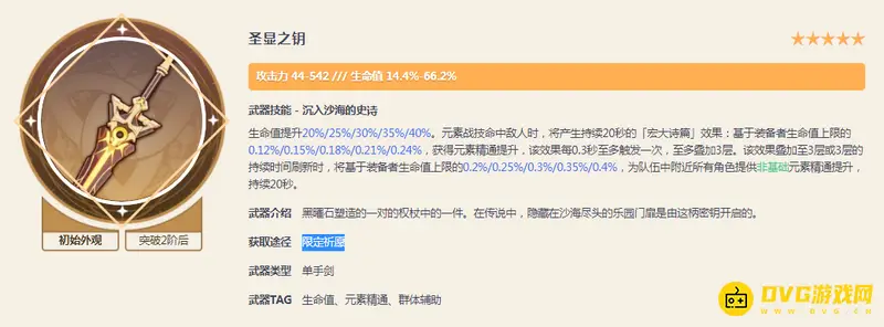 原神的板砖是圣显之钥。在原神游戏中,圣显之钥是稀有度为五星的单手剑,其可以通过限定祈愿获得。武器介绍:黑曜石塑造的一对的权杖中的一件。在传说中,隐藏在沙海尽头的乐园门扉是由这柄密钥开启的。